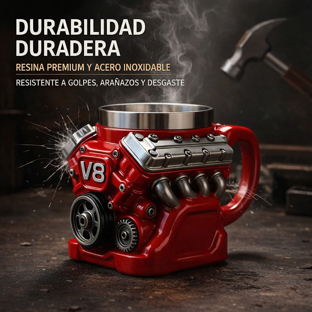 Gracias a su carcasa de resina de alta calidad y su resistente revestimiento interior de acero inoxidable, esta taza V8 de acero inoxidable no solo es resistente a golpes, arañazos y al desgaste diario, sino que también garantiza un uso prolongado sin deformarse ni dañarse con el tiempo.
